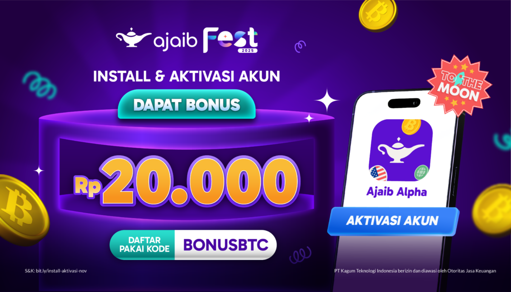 - Dengan melakukan pembelian Aset Kripto untuk pertama kali melalui Aplikasi Ajaib Alpha, Konsumen setuju untuk mengikuti Program ini dan tunduk pada setiap syarat dan ketentuan yang berlaku termasuk namun tidak terbatas pada Syarat dan Ketentuan Layanan Aset Kripto, termasuk perubahannya dari waktu ke waktu.
