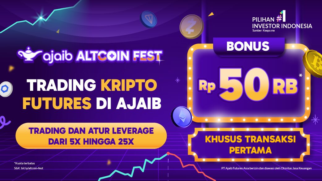 Investasi Aset Kripto mengandung risiko dan sepenuhnya menjadi tanggung jawab pribadi. Informasi ini disusun oleh PT Ajaib Futures Asia berdasarkan riset internal perusahaan, tidak dipengaruhi pihak manapun. Informasi ini bukan merupakan suatu rekomendasi, ajakan, usulan ataupun paksaan untuk melakukan transaksi jual/beli. Harga Aset Kripto bersifat fluktuasi secara real-time. Pelajari dan pahami sebelum bertransaksi.Mohon diperhatikan bahwa domain resmi Ajaib adalah “https://alpha.ajaib.co.id/” dan semua korespondensi resmi ataupun korespondensi email yang dikirimkan oleh kami akan menggunakan platform resmi aplikasi Ajaib dan/atau alamat email yang berakhiran “@ajaib.co.id” (“Media Resmi Ajaib”). Selain melalui Media Resmi Ajaib, kami tidak pernah meminta informasi yang bersifat pribadi dan rahasia seperti data pribadi, kata sandi, PIN (personal identification number), dan/atau kode OTP (one-time password) pengguna (“Informasi Rahasia”) melalui email, sosial media maupun media dan bentuk komunikasi lainnya. Jangan pernah memberitahukan Informasi Rahasia anda kepada pihak lain, termasuk pihak-pihak yang mengatasnamakan Ajaib. Semua pemberian Informasi Rahasia kepada pihak-pihak yang mengatasnamakan Ajaib namun tidak berasal dari atau tidak menggunakan Media Resmi Ajaib merupakan tanggung jawab pribadi pihak pemilik Informasi Rahasia dan kami tidak bertanggung jawab atas setiap penyalahgunaan Informasi Rahasia yang dilakukan oleh pihak-pihak yang mengatasnamakan Ajaib yang tidak berasal dari atau tidak menggunakan Media Resmi Ajaib.